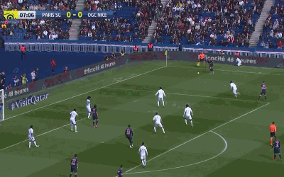 GOAL! 1-0 NICE! From the kick-off Ganago latches onto a sweet pass from Dante from the back, getting between Alves and Marquinhos, and absolutely cannons a first-time half-volley past Areola satisfyingly off the upright.