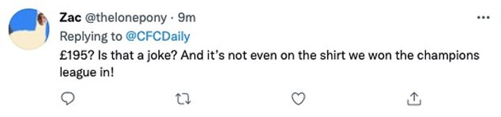 @thelonepony agreed, posting: '£195? Is that a joke? And it's not even on the shirt we won the Champions League in!'.