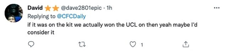 @dave2801epic commented: 'If it was on the kit we actually won the UCL on then yeah maybe I'd consider it'.
