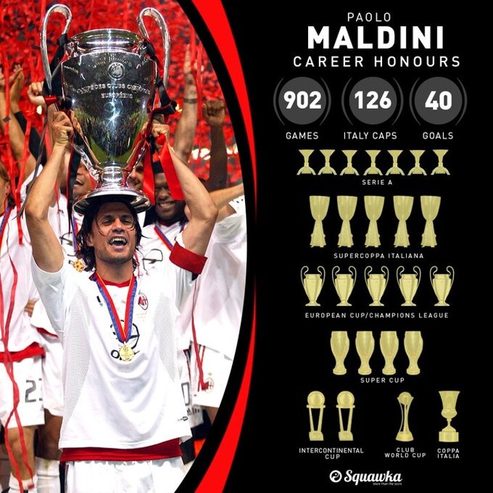 Maldini has made 902 appearances in his career and made 126 caps for Italy.