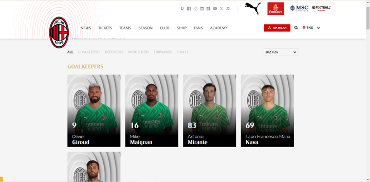 AC Milan have included Olivier Giroud in the goalkeepers list on their website after yesterday night’s save.