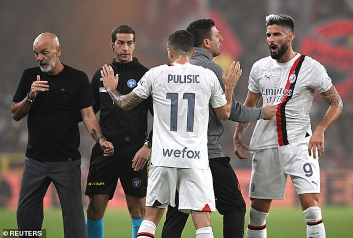 The visitors threatened against 10-man Milan, with Albert Gudmundsson's freekick nicking the bar, but it was Giroud's quick-thinking that saw the former Chelsea star block Genoa's final run at an equaliser.