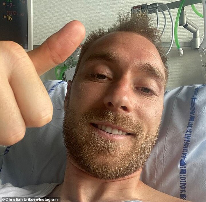 Eriksen released his first public statement since the incident on Monday, insisting he 'feels better' and 'won't give up'. He's now posted a photo on Instagram of himself giving a thumbs up in his hospital bed.