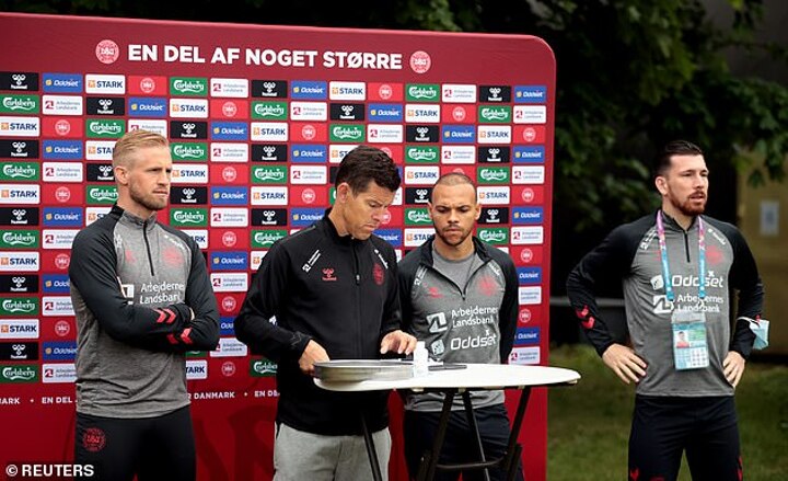 Hojbjerg, Braithwaite and Leicester City goalkeeper Schmeichel all spoke on Monday morning at a press conference - the first time any of Eriksen's Denmark team-mates have appeared publicly since Saturday's game.