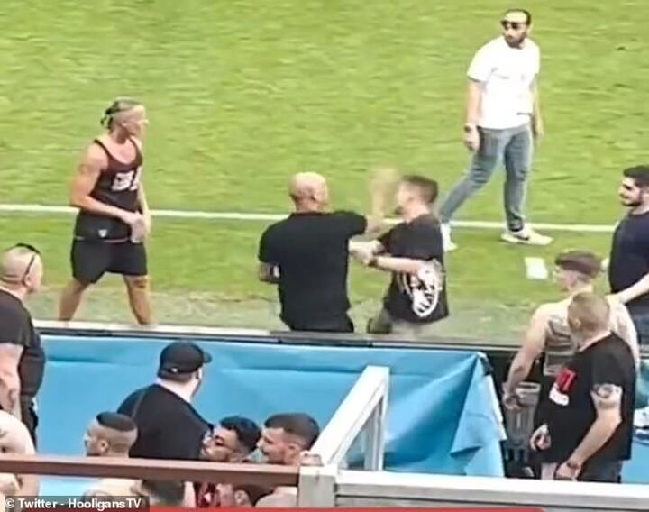 But video footage has now emerged of the club's hardcore fans slapping down their fellow supporters as they returned to their seats around the stadium.