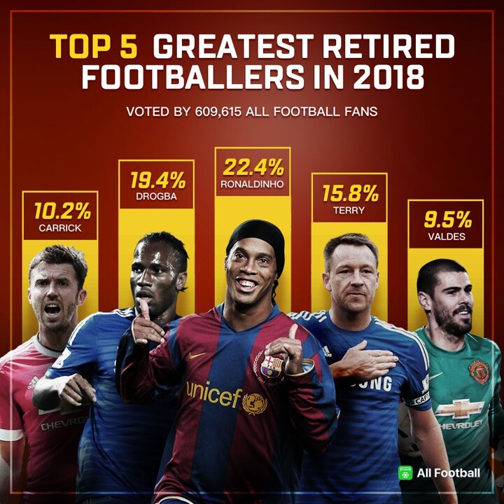 In 2018, there are some football players chose to hang up their boots. Among these big names, who are the top 5 players in your eyes? We posted a vote some days ago: Pick your Top 5 greatest retired footballers in 2018! And here are the results:
