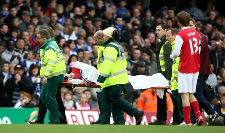 The Arsenal man fractured his ankle and ruptured ligaments in his leg in a 3-0 win over Sunderland in 2006.