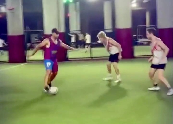 But he donned a Barca kit in Miami as he strutted his stuff at Stadio Soccer.