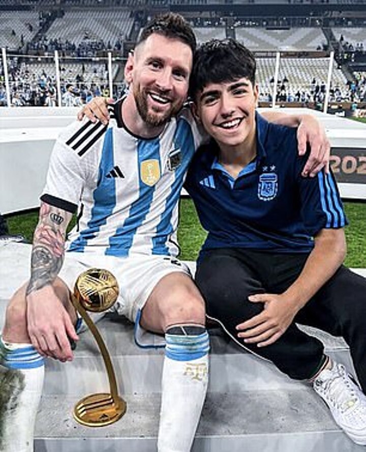 The youngster is in fact the grandson of the late great Diego Maradona, widely considered one of football's greatest talents and the predecessor to Messi's status as Argentina's idol.