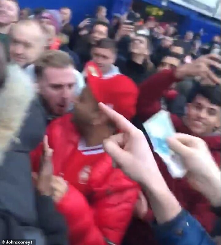 Lyle, who interviews fans after Arsenal games to get their thoughts on the match, was seen arguing with an angry supporter outside Goodison Park whilst others chanted at the media organisation to stay away.