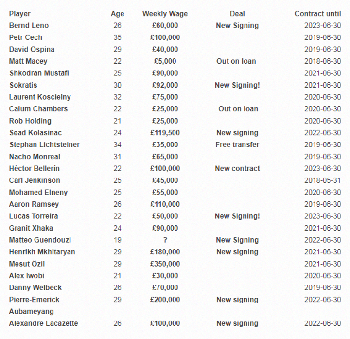 Hector Bellerin signed a new contract over the summer that was given a hefty pay rise as a reward for his impressive form in the past two seasons. One of their biggest earners, Alex Oxlade-Chamberlain, was allowed to leave late on in the transfer window.