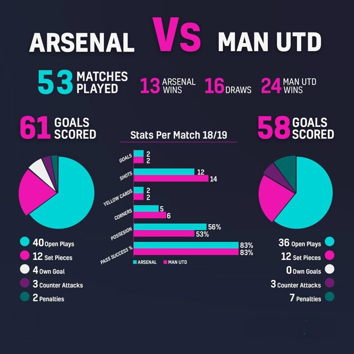 Today Arsenal will be against Man United at the Emirates Stadium. It's a huge game in the race for the Premier League top four. Here are stats between the two teams and parody posters for this match.