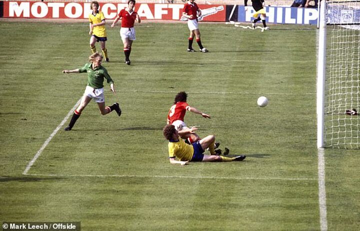 ‘Gordon McQueen scored in the 86th minute and Sammy Mcllroy in the 88th. All of a sudden they became favourites. I remember Arsenal fans with their heads in their hands and United fans delirious.’