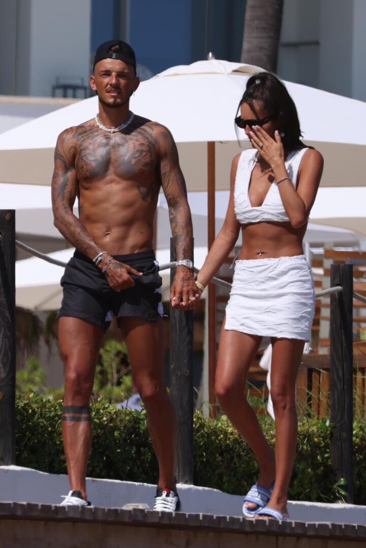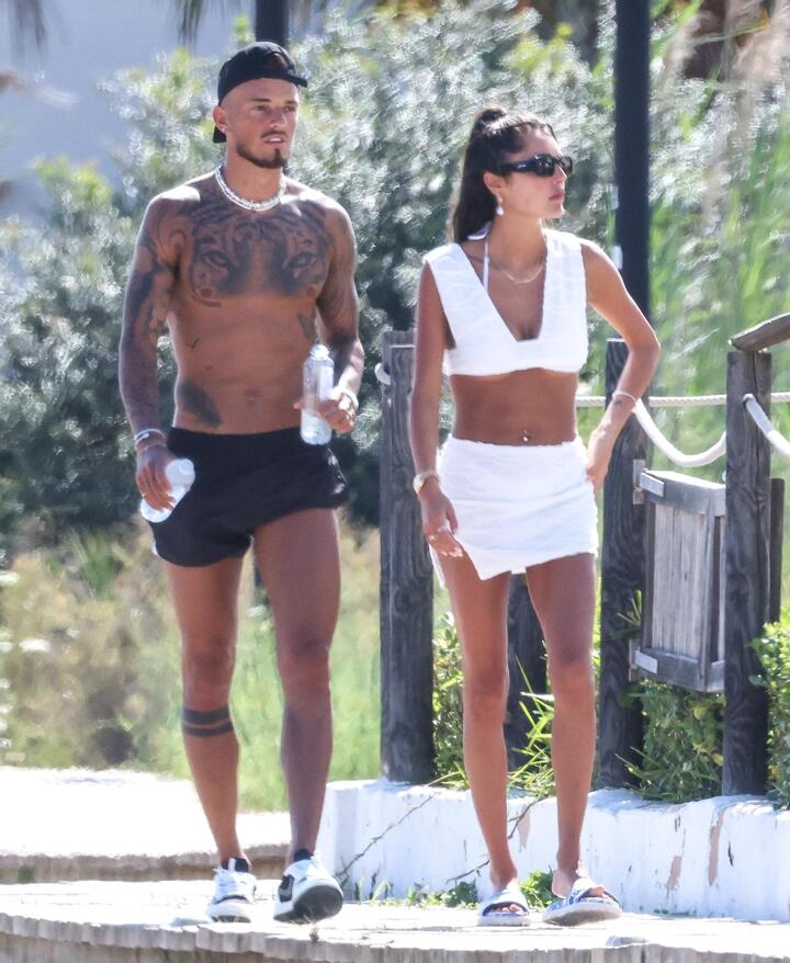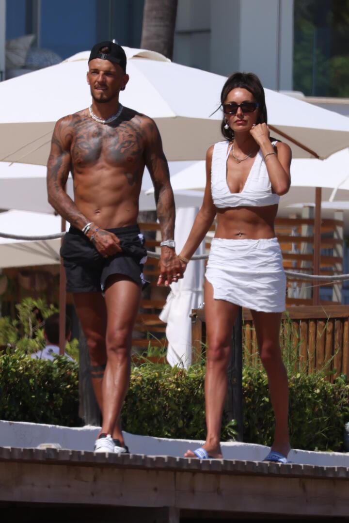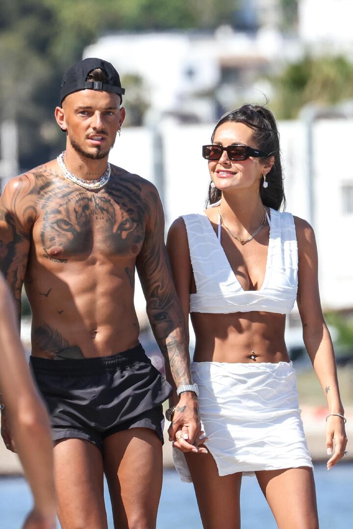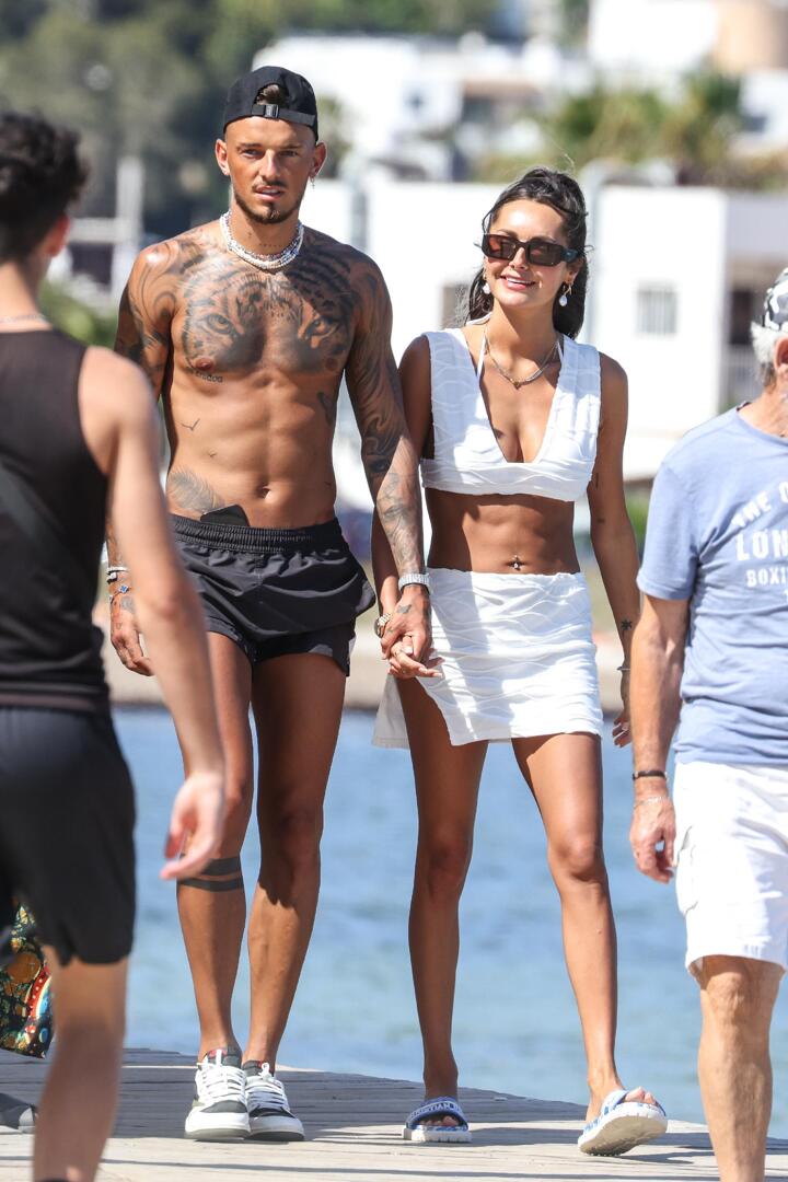 The player, 25, and model Milly, 26, walked hand in hand on the White Isle.