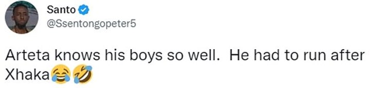 'Nah this has been killing me for a few hours, another quipped. 'Everyone has a friend like Xhaka.'