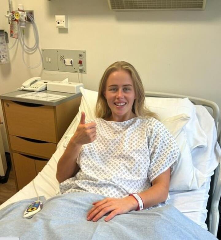 And the Villa star tweeted an image from her hospital bed with a caption saying 'can't wait to be back,' along with a laughing emoji.