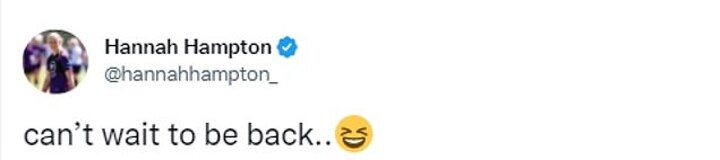 When asked about Hampton's situation, Ward then said: 'She has a recurring muscle injury, she'll undergo a small medical procedure tomorrow. After that she'll be back in contention. That's as much as I want to say on the matter.'