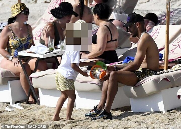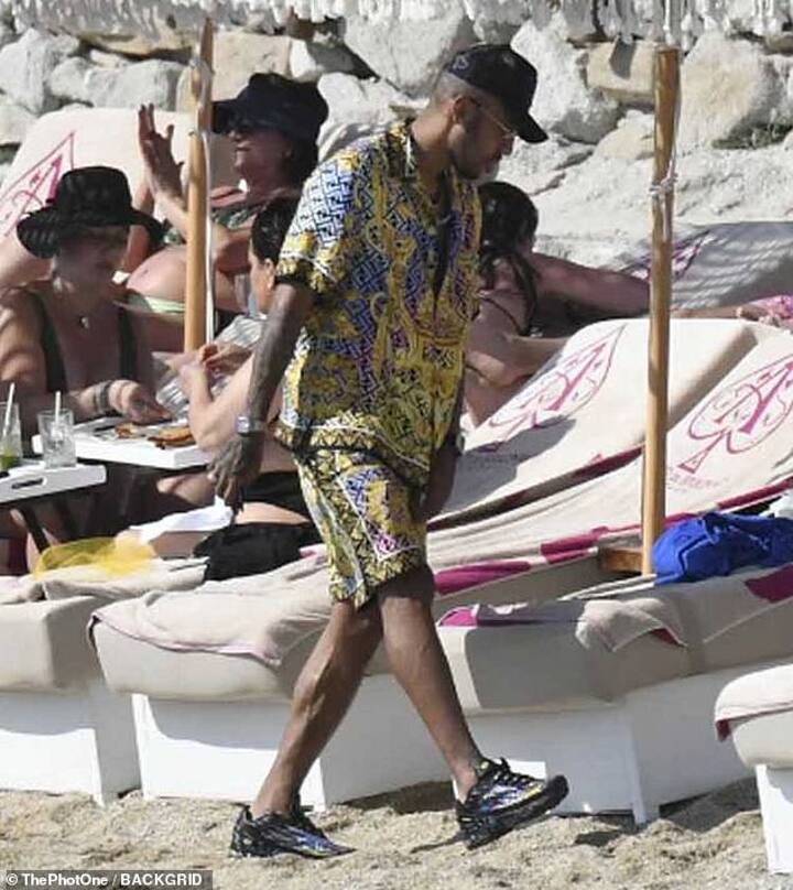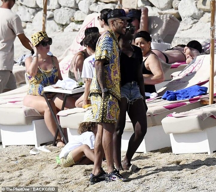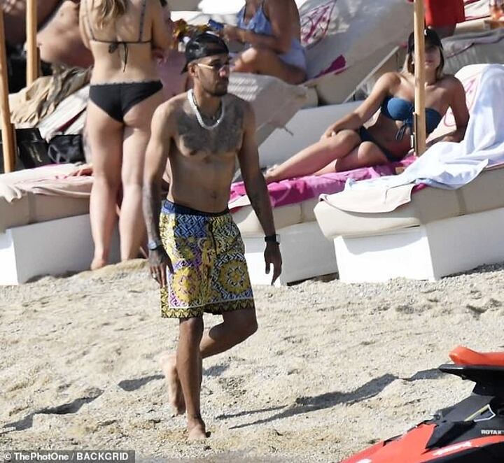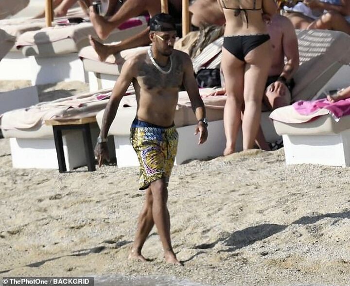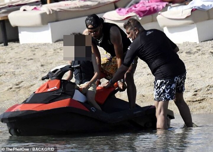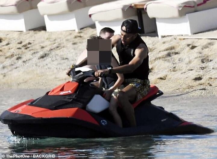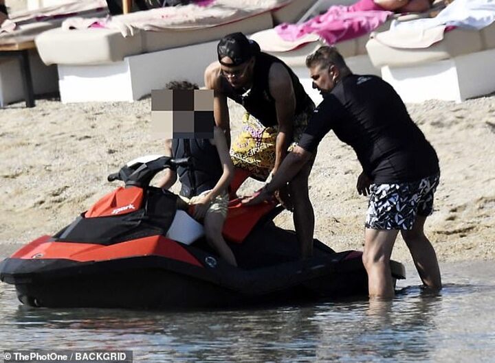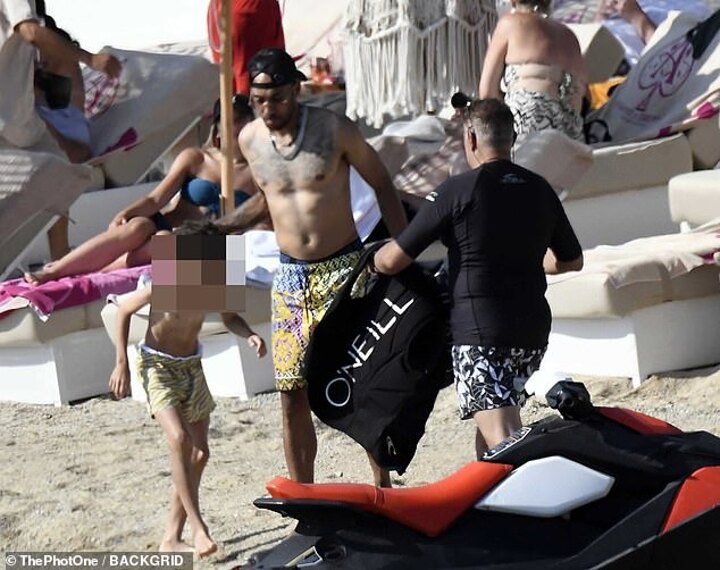 Pierre-Emerick was seen boarding a jet ski with his eldest son Curtys, 10, while his youngest child Pierre, four, enjoyed a swim in the ocean.