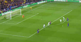 Lionel Messi puts the ball in the net and the home team extend their lead. The score-line now reads 3-0.
