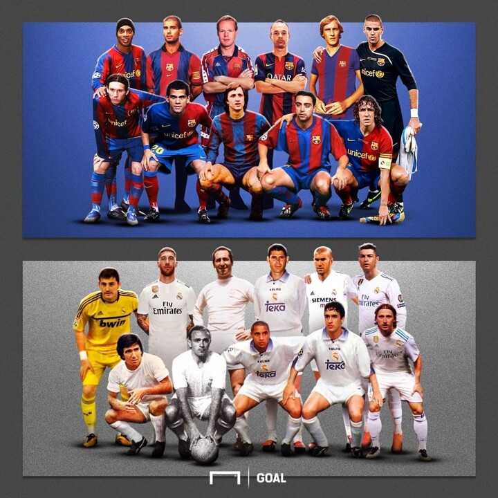 Tomorrow will be El Clasico. Here is a picture of Barca and Real Madrid legends. Which squad is better? Who would win this match?