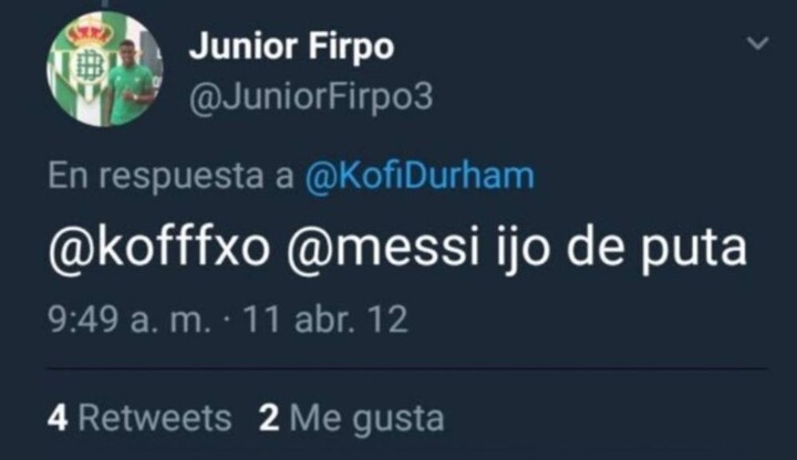 Betis left-back Firpo is frequently linked with Barcelona and he has abused Messi on Twitter when he was 15