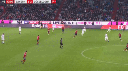 UNBELIEVABLE! BAYERN MUNICH COLLAPSE TO A HAT-TRICK FROM LUKEBAKIO! 3-3 AT THE 93RD MINUTE! Hennings lumps a pass forward from the centre-circle which once again finds Lukebakio in complete space in the opposition half! Despite the best efforts of Kimmich to get back and defend, the striker’s pace proves too much and he beats Neuer with a simple finish to earn a point!