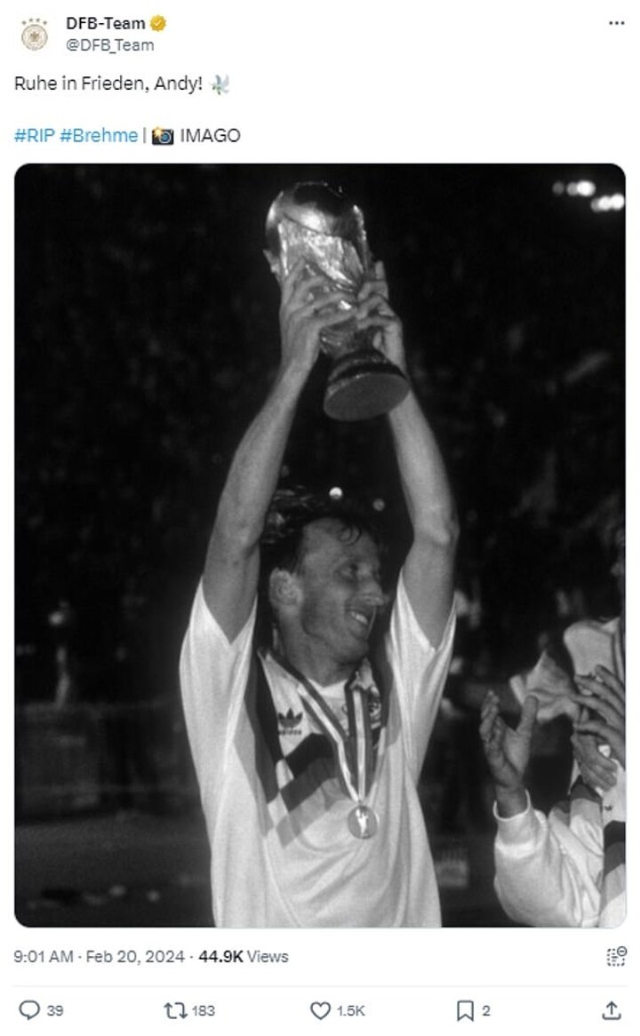 The German national football team wrote on X: 'Rest in peace, Andy!'