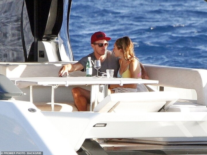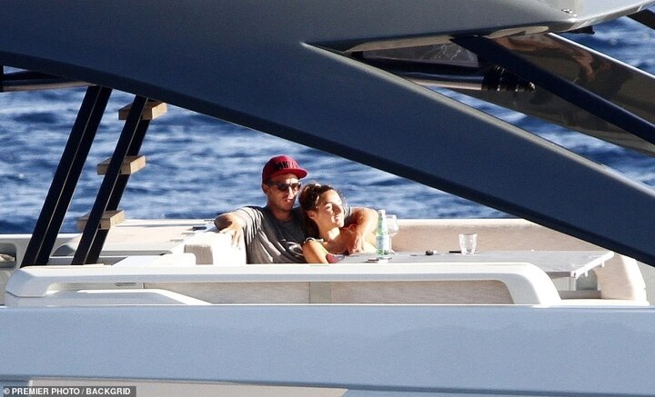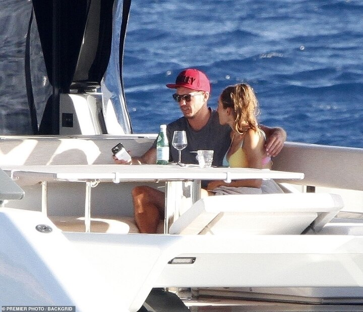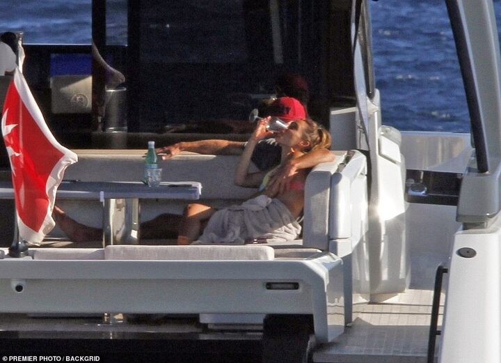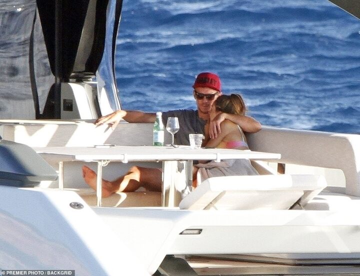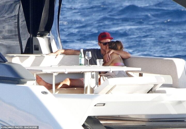 The loved-up pair appeared inseparable as they kissed and held each other in their arms on the yacht off the coast of Ibiza on Tuesday.