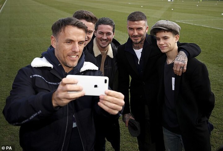 Son Romeo cast doubt on whether that was his dad's first take, asking 'how many times?', while Inter Miami's new boss Phil Neville mocked his old team-mate with 'is this real?'.