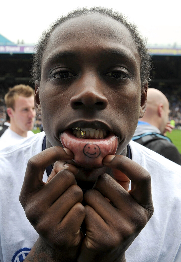To be fair to the man who has a smiley face tattooed inside his mouth, there wasn't much space left on the rest of his body.