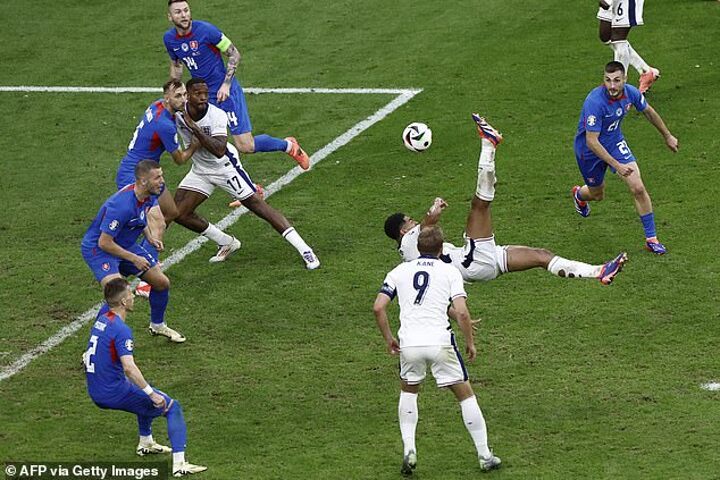 After his 95th minute overhead kick saved the Three Lions from defeat, Real Madrid midfielder Bellingham was seen making an apparent crude gesture towards to the Slovakia bench.