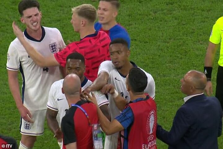 Later, after Harry Kane had scored a winner in extra-time, Declan Rice was involved in a heated exchange with opposition manager Francesco Calzona, which led to him being held back by Aaron Ramsdale. Rice appeared to call the Italian, who had tried to approach the officials, a 'bald ****'.