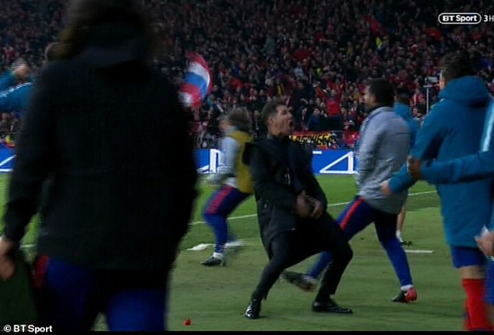 Atletico Madrid manager Diego Simeone only received a £17,000 fine for making a similar gesture during his side's last 16 Champions' League game against Juventus in 2019.