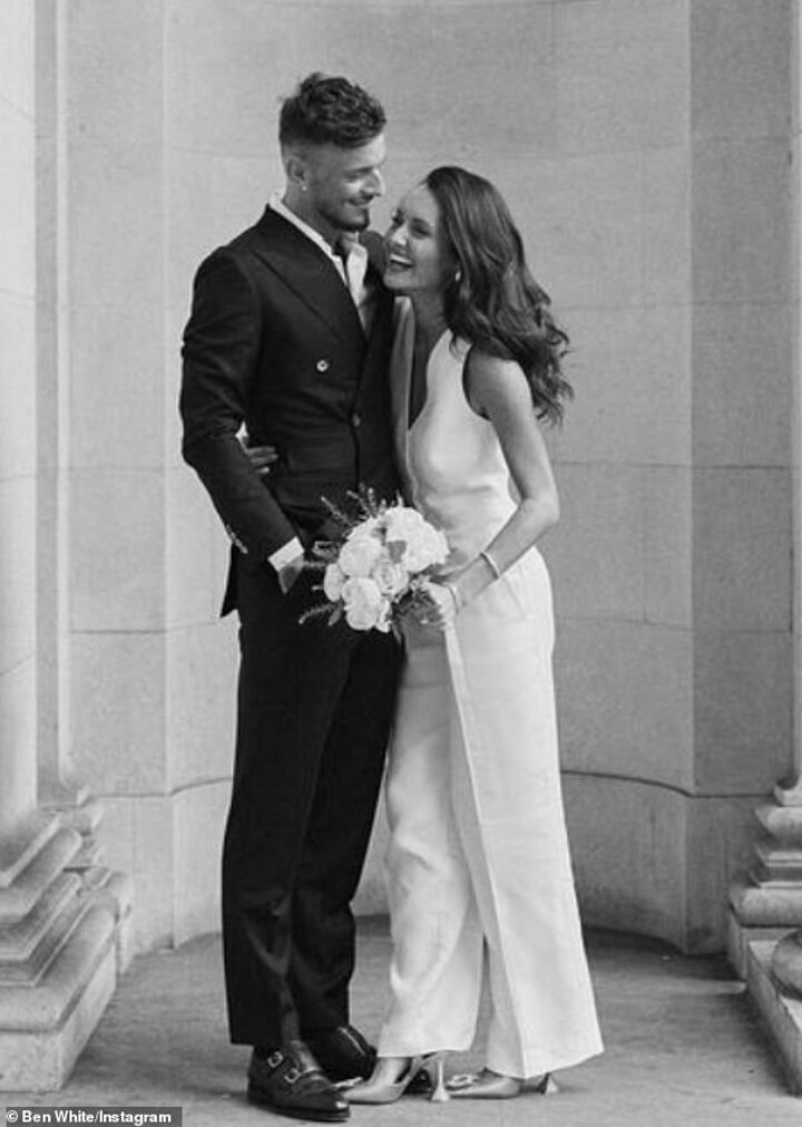 Ben meanwhile, opted for a double breasted suit blazer and a waistcoat which had the initials 'Mr and Mrs White' embroidered onto the pocket.