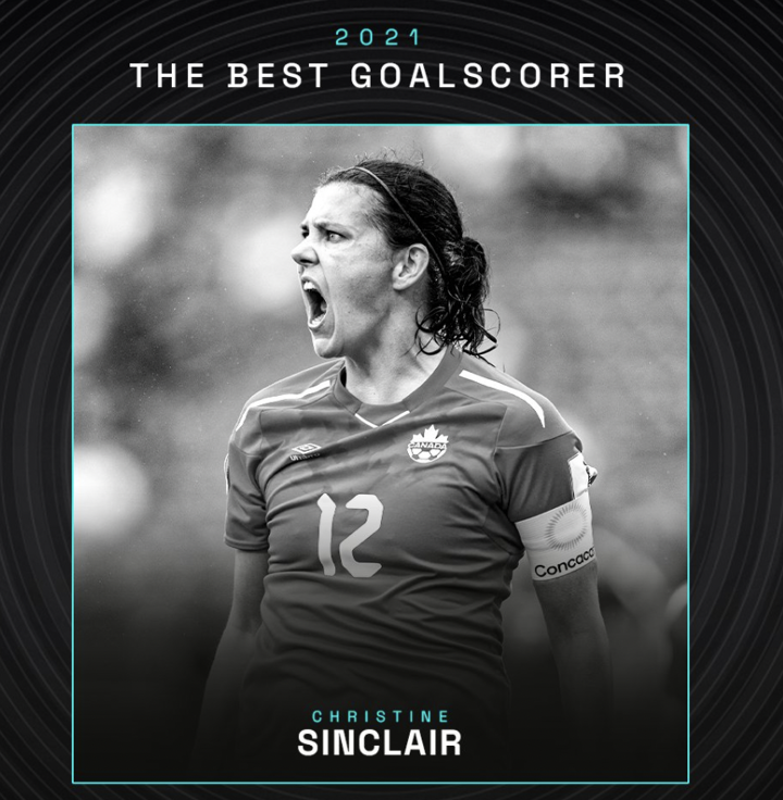 19:10 CET - Christine Sinclair has been recognised with a special award for breaking the all-time international goal-scoring record