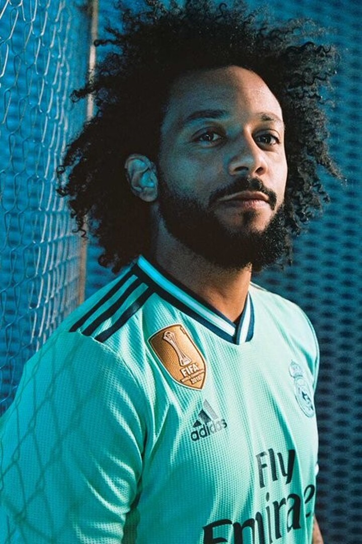 The Real Madrid 2019-20 third jersey is predominantly mint green with navy and white used as secondary and tertiary colours.