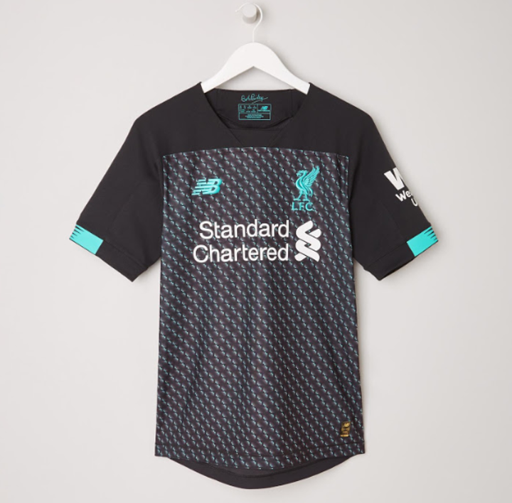The New Balance Liverpool 2019-2020 third jersey is dark grey/black with bright teal logos. Based on the new NB template, Liverpool's new 2019-20 third shirt features a bold and eye-catching graphic print on the front.