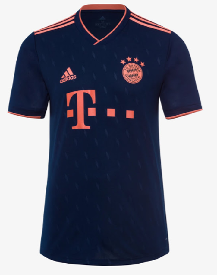 Quite a bit like the Manchester United 19-20 third kit, the new Bayern third / Champions League kit combines a navy base with bright orange / red.
