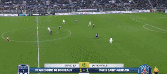 Brilliant play down the right by Karamoh down the right for Bordeaux who is invited to run to the byline by the PSG defence. He cuts a ball back to toward Sankhare, he steps over the ball and Briand is waiting behind him to slot the ball to the left of Areola and into the back of the net.