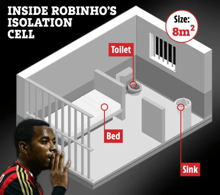 Robinho, who has an estimated £60million net worth, has since been transferred to a tiny 8m squared cell, which he shares with another inmate.
