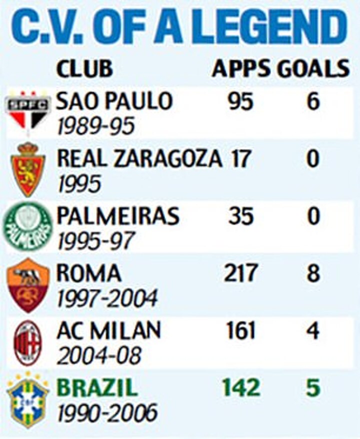 Cafu's teams, it should be noted, did very well. It was with good reason he was dubbed 'The Lungs of Brazil' and 'The Express Train'.