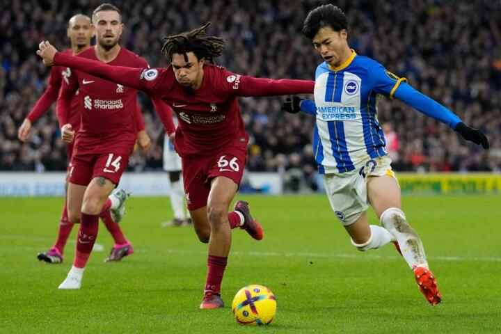 Only one player in the Premier League (West Ham United's Said Benrahma) has completed more dribbles per match this season than Mitoma, and the Japan forward's latest victim was Liverpool's Trent Alexander-Arnold, who had no answer to his intensity and speed last weekend.