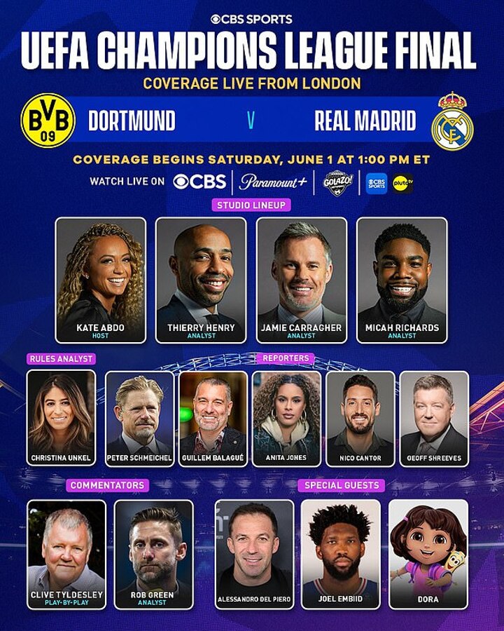 Meanwhile, a wealth of talent including Peter Schmeichel, Guillem Balague, Anita Jones, Nico Cantor and Geoff Shreeves will be on hand to provide reports live from London as CBS gears up to present seven and half hours of Champions League coverage across its platforms.