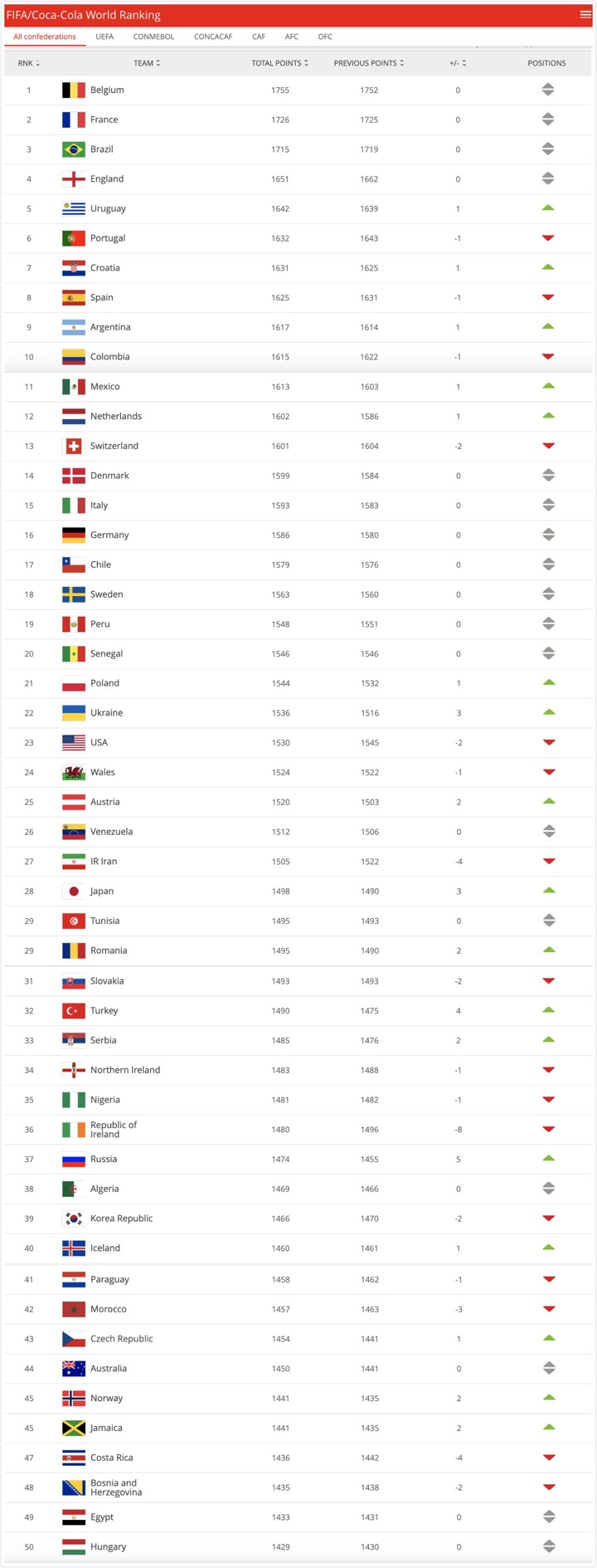 Here's the latest FIFA Rankings
