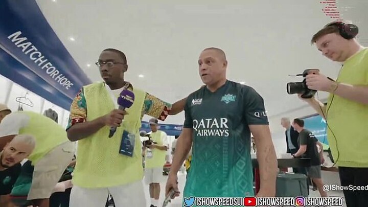 Roberto Carlos was far from impressed with IShowSpeed's first half performance in Friday's charity match in Qatar and jokingly let him know.