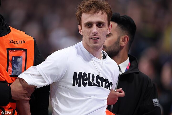 The troublemakers wore t-shirts promoting 'Mellstroy', a scandalous vlogger who offered the prize reward to anyone who would invade the pitch in his name.