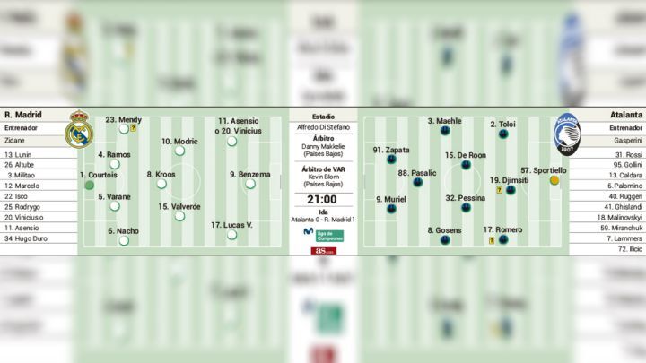 Álvaro Odriozola, Dani Carvajal, Eden Hazard and Mariano Díaz remain in the Real Madrid sick bay, while the yellow card Casemiro picked up in the opener against Atalanta means he is suspended for the second leg at the Estadio Alfredo di Stéfano.