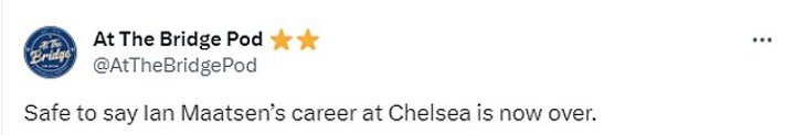 One account posted: 'Safe to say Ian Maatsen’s career at Chelsea is now over.'