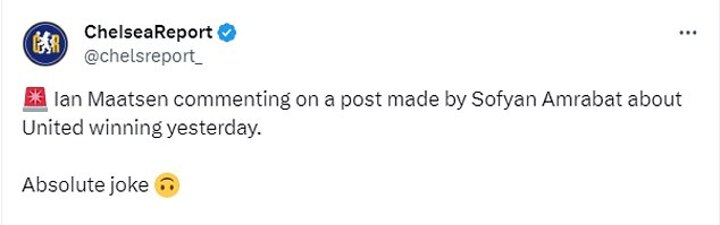 'Ian Maatsen commenting on a post made by Sofyan Amrabat about United winning yesterday. Absolute joke', another user said.