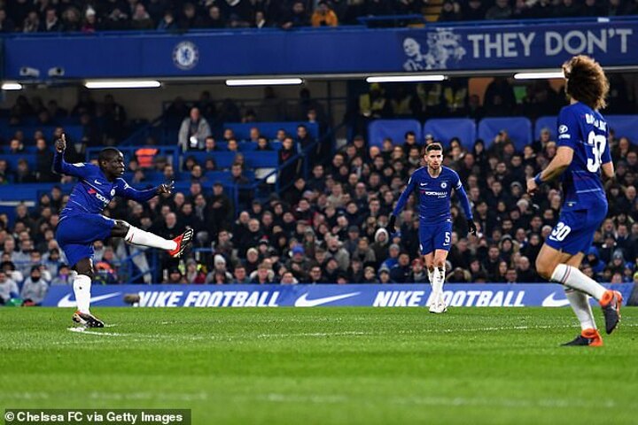 Seizing upon a ball bouncing perfectly on the edge of the area from Eden Hazard's corner, Kante stepped up and lashed through with his right foot - catching the sweet spot.